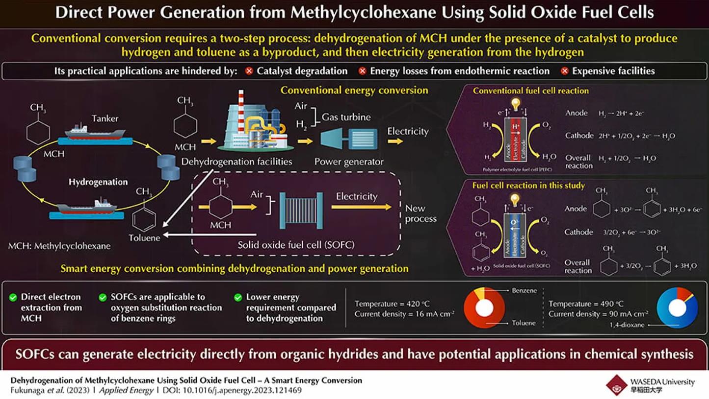 • 日本早稻田大學研發新方法:固體氧化物燃料電池直接將有機氫化物轉化為電能