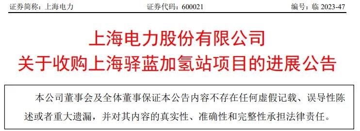 上海電力在5月22日發布公告,表示其全資子公司國電投長江氫能科技有限公司近日已成功收購上?;^驛藍加氫站項目的51%股權。