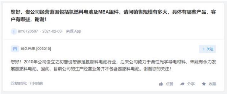 日久光電未涉獵氫燃料電池領域,雪人股份氫能公交已運營7萬公里