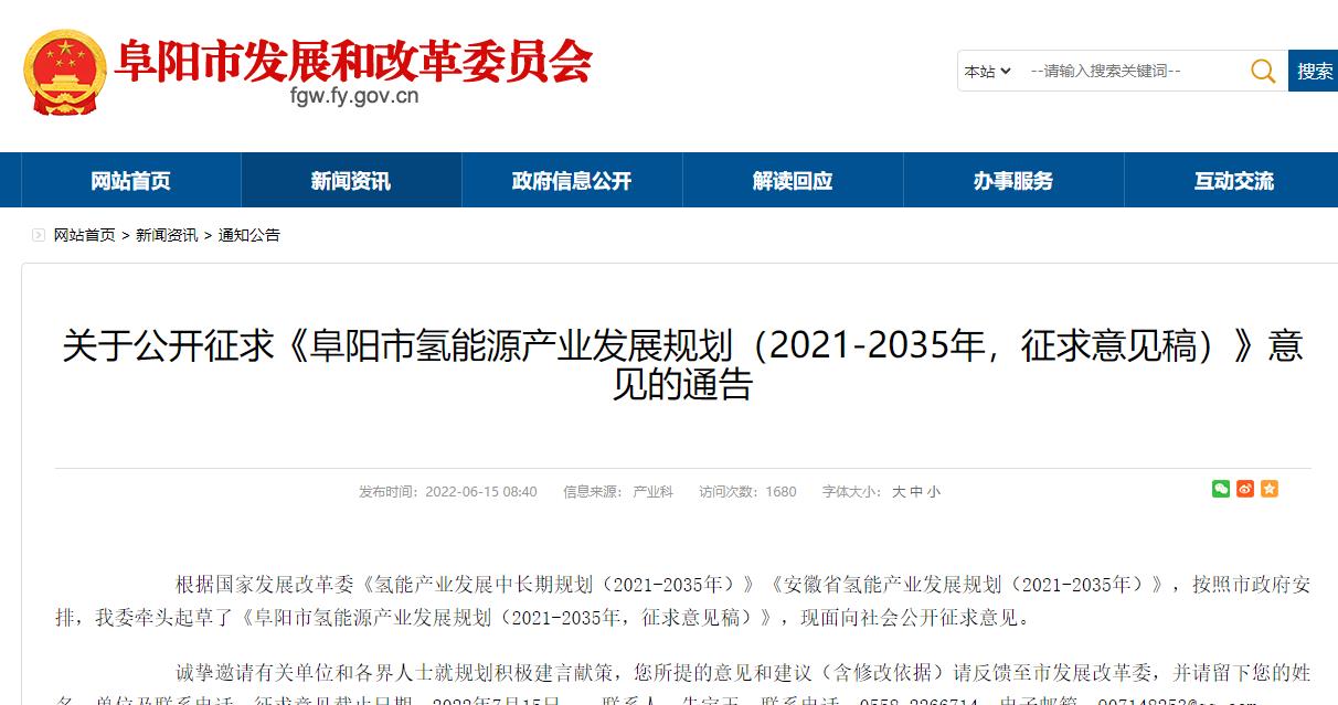 打造長三角最大的氫源供應基地!《阜陽市氫能源產(chǎn)業(yè)發(fā)展規(guī)劃(2021-2035年,征求意見稿)》發(fā)布