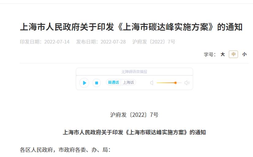 氫啟未來網(wǎng)獲悉,7月28日,上海市人民政府在其官網(wǎng)發(fā)布關于印發(fā)《上海市碳達峰實施方案》的通知