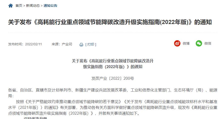涉及氫能領域!國家發(fā)改委發(fā)布了《高耗能行業(yè)重點領域節(jié)能降碳改造升級實施指南》