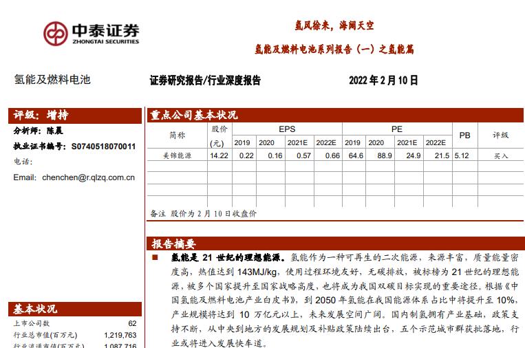 氫能作為一種可再生的二次能源,來源豐富,質量能量密度高,熱值143MJ/kg,使用環(huán)境友好,無碳排放。根據《中國氫能及燃料電池產業(yè)白皮書》,到2050年,氫能在中國能源體系中的比重將提高到10%,產業(yè)規(guī)模將達到10萬億元以上,未來發(fā)展空間廣闊。從中央到地方的發(fā)展規(guī)劃和補貼政策相繼出臺,五個示范城市群已獲批實施,行業(yè)可能進入發(fā)展快車道。