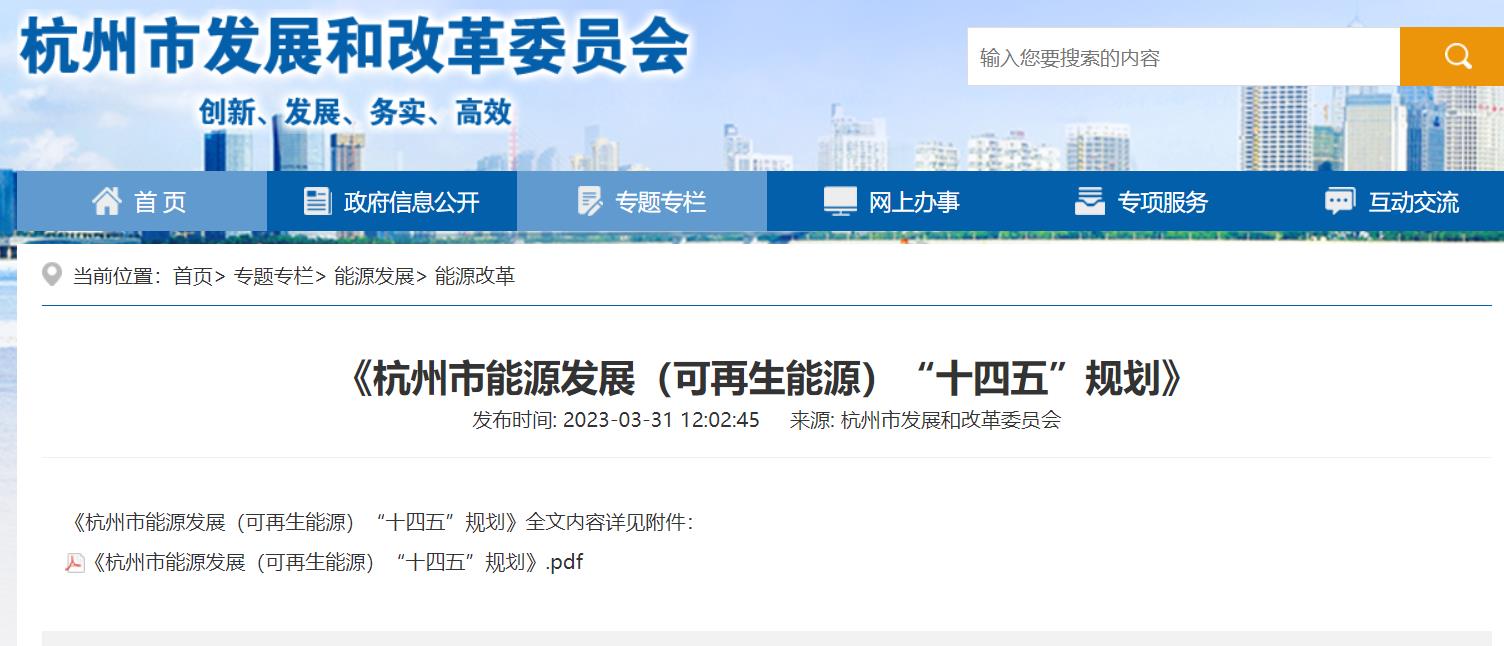 氫啟未來網(wǎng)獲悉,3月31日,杭州市發(fā)展和改革委員會(huì)印發(fā)《杭州市能源發(fā)展(可再生能源)“十四五”規(guī)劃》