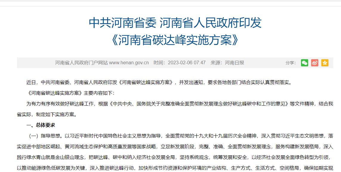 氫啟未來網獲悉,近日,河南省人民政府印發(fā)《河南省碳達峰實施方案》