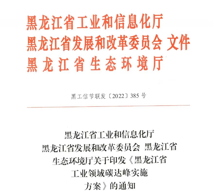 12月14日,黑龍江省工信廳、省發(fā)改委、省生態(tài)環(huán)境廳三部門聯(lián)合發(fā)布《黑龍江省工業(yè)領(lǐng)域碳達(dá)峰實施方案》
