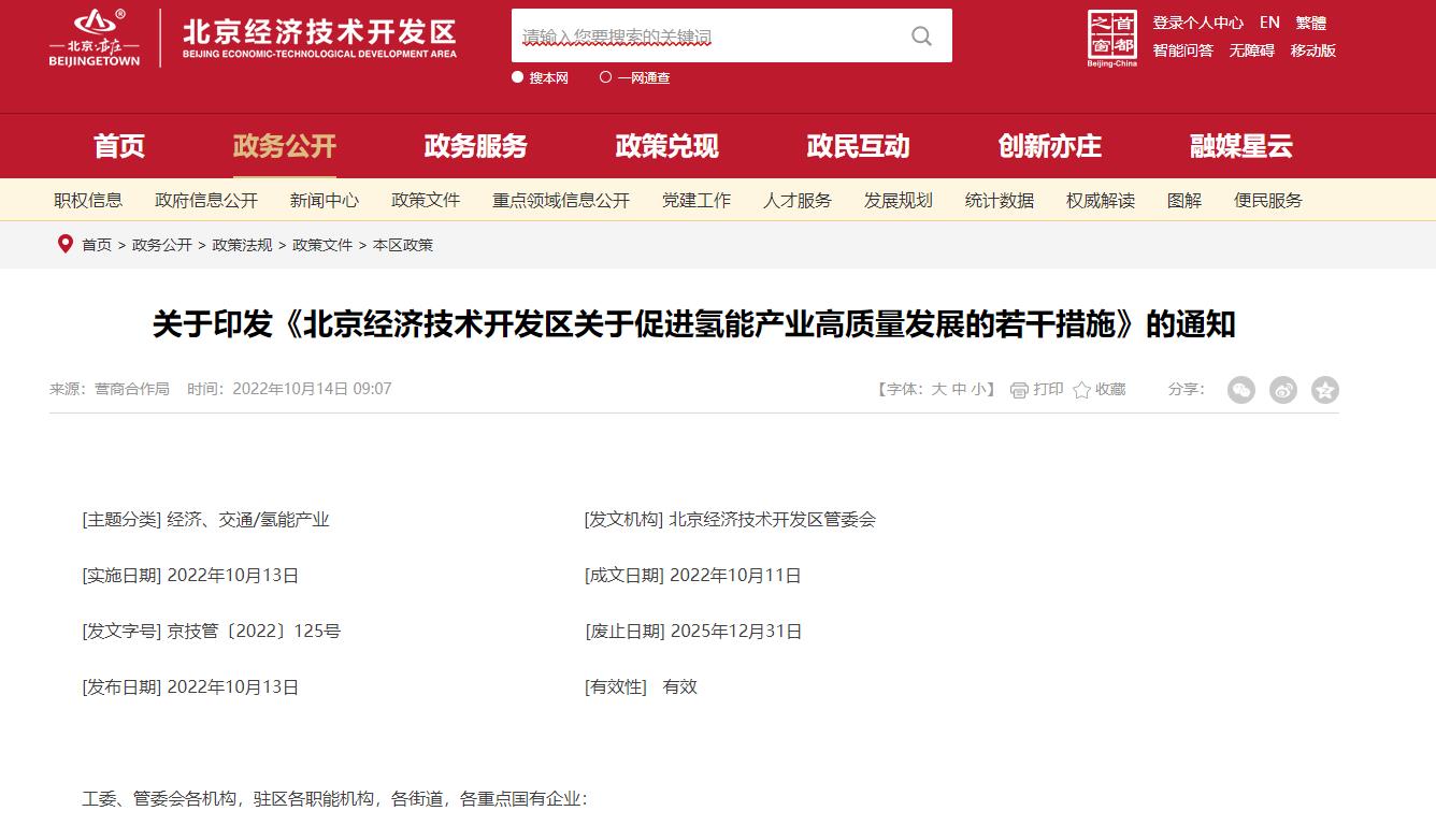 氫啟未來網(wǎng)獲悉,10月13日,《北京經(jīng)濟(jì)技術(shù)開發(fā)區(qū)關(guān)于促進(jìn)氫能產(chǎn)業(yè)》。