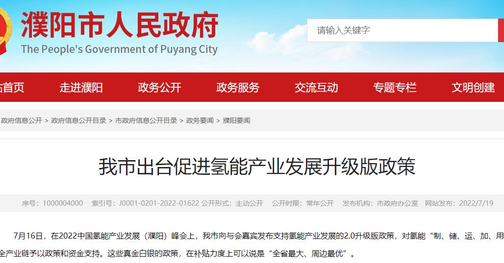 濮陽市出臺(tái)政策,推動(dòng)氫能產(chǎn)業(yè)發(fā)展升級(jí)版