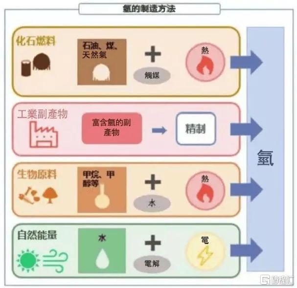 而且,在煤炭和石油時代,人們早已發現了氫可作為煉制化石能源的副產品,因此氫的制備多種多樣,還可以很好地利用起石油時代的基礎設施和產業鏈。