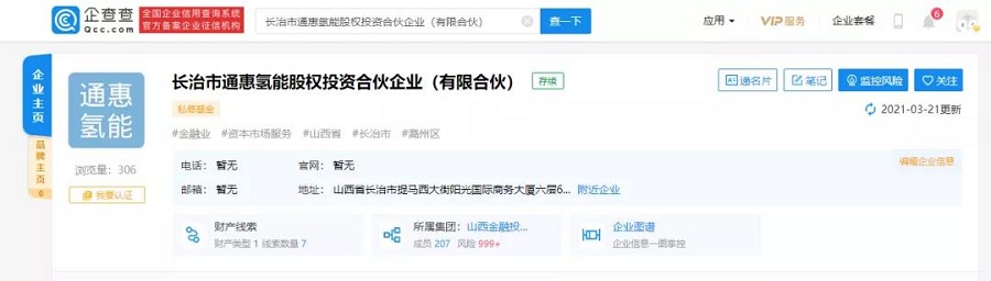 近期,氫云鏈從山西經(jīng)濟日報獲悉,山西省首支氫能產(chǎn)業(yè)基金——長治市通惠氫能股權投資合伙企業(yè)(有限合伙)于2020年12月30日在長治市注冊,并于近日在中國證券投資基金業(yè)協(xié)會完成備案,查詢企查查了解到,該私募基金,由長治市財通惠股權投資管理有限公司作為基金管理人,總規(guī)模10100萬元。