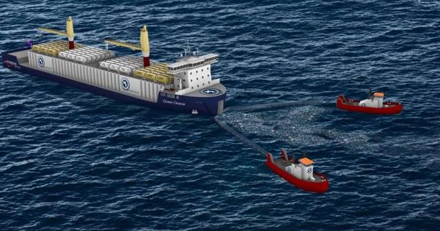 這艘計劃超過150米長的船將以4節(jié)的速度航行,兩艘較小的船將收集塑料垃圾,并拖著一個2英里長的網(wǎng),將垃圾從水面匯集到10米以下。