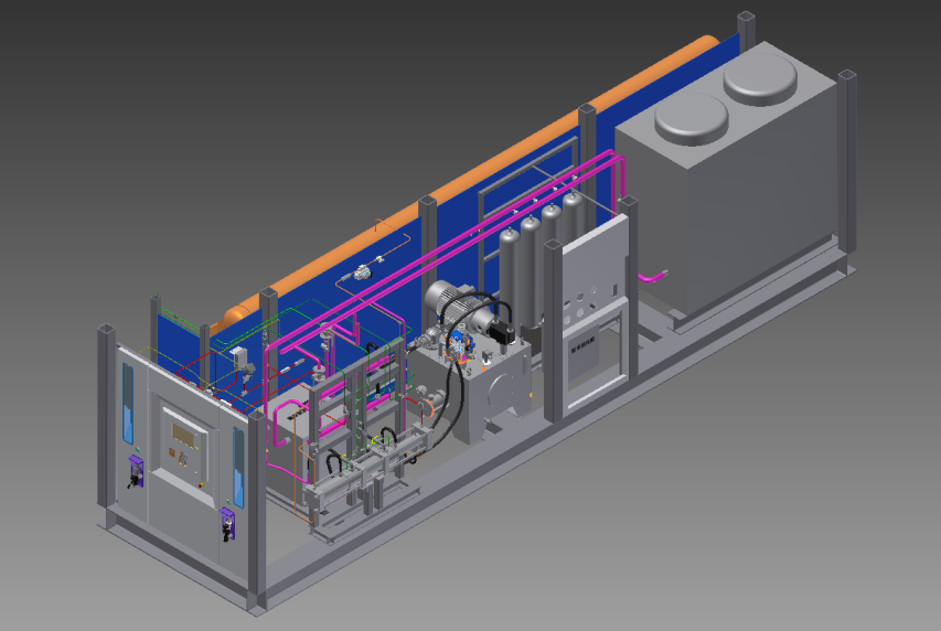 重慶耐德能源裝備在此項目將為客戶定制生產一套質子交換膜電解水制氫(PEM)設備、一套增壓加注設備以及一套燃料電池組。該套設備采用先進的集裝箱式供貨模式,其中制氫設備巧妙集成于40英寸集裝箱內,增壓加注設備則集成于30英寸集裝箱內,集成度極高,不僅節省空間,還極大地提高了安裝的便捷性與高效性,可快速完成現場部署,為項目順利推進提供有力保障。