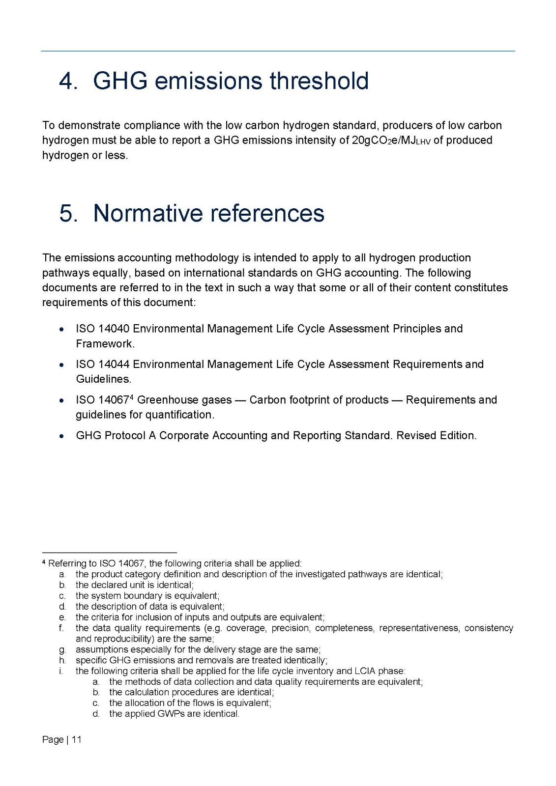 英國(guó)政府建議使用《英國(guó)低碳?xì)錁?biāo)準(zhǔn)》中規(guī)定的方法作為認(rèn)證的基礎(chǔ),該標(biāo)準(zhǔn)規(guī)定,氫氣生產(chǎn)商必須達(dá)到20g CO2e/MJLHV或更低的溫室氣體排放強(qiáng)度,才能被視為低碳。