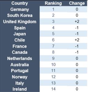 表1 -指數排名和與上一版本(2022年3月)相比的變化: