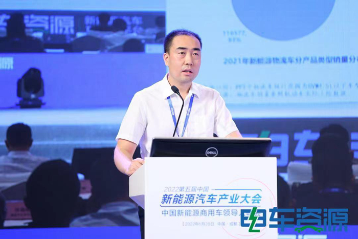 在中國新能源商用車領導人峰會上,開瑞新能源汽車有限公司常務副總經理、全國新能源商用車市場信息聯席會會長趙維華發表了《2022新能源物流車得中面,得地位》的主題演講,他認為中面市場發展快、規模大、效率高,風口來臨,要抓住機遇發展。