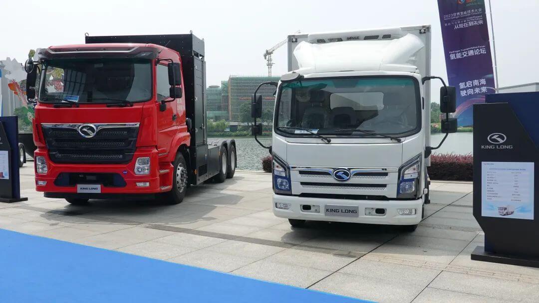 [ 導讀 ]5月23日,2023世界氫能技術大會(WHTC2023)在廣東省佛山市舉辦。金龍客車攜4.5噸燃料電池冷藏車與49噸氫燃料電池牽引車參展...