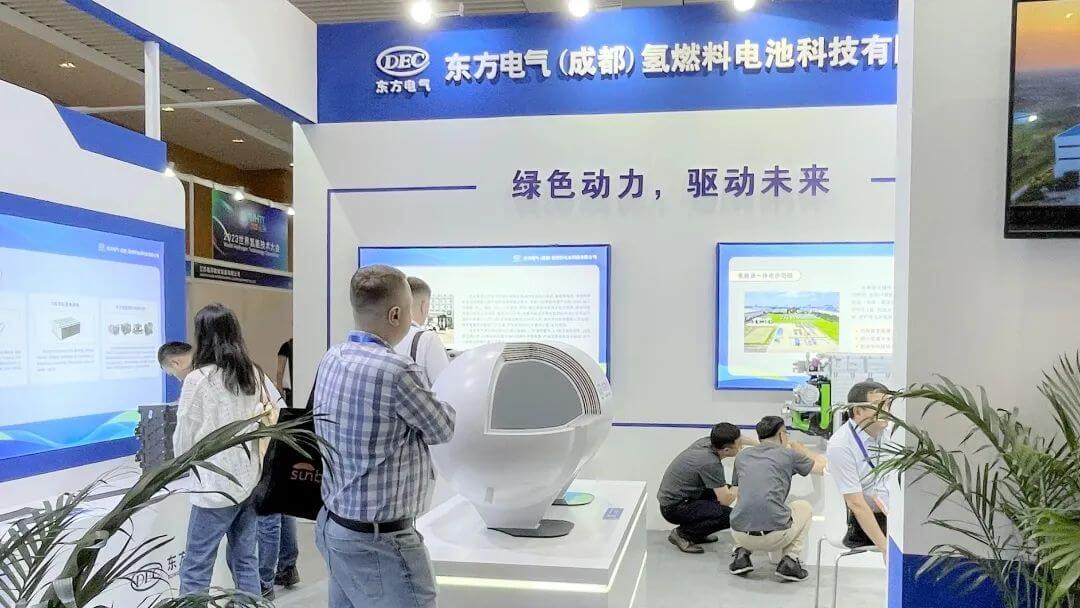 在東方氫能展區(qū)現(xiàn)場的膜電極、雙極板、燃料電池電堆、燃料電池系統(tǒng)以及儲氫罐等產(chǎn)品,吸引了眾多學(xué)者、企業(yè)代表、嘉賓走進(jìn)展區(qū),進(jìn)行參觀交流。