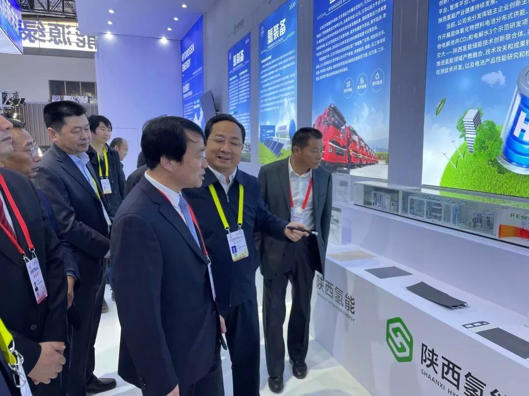 絲博會已成功舉辦6屆,為深度融入共建“一帶一路”大格局,打造內(nèi)陸改革開放高地,推動形成以國內(nèi)大循環(huán)為主體、國內(nèi)國際雙循環(huán)相互促進的新發(fā)展格局發(fā)揮了重要平臺作用,取得了豐碩合作成果。本屆絲博會以“經(jīng)貿(mào)拓展·互聯(lián)互通·互利共贏”為主題,在西安國際會展中心設置6個展區(qū),將進一步提升東西部經(jīng)貿(mào)和技術(shù)交流水平,加快國內(nèi)經(jīng)濟雙循環(huán)。應陜西省榆林市管委會、陜西氫能產(chǎn)業(yè)發(fā)展有限公司(以下簡稱陜西氫能)邀請,國氫科技攜自主品牌“斯”系列關(guān)鍵材料部件、“氫騰”燃料電池、“氫涌”PEM電解水制氫設備等7件產(chǎn)品分別在“開放平臺展”和“先進制造業(yè)展”雙展區(qū)展出,吸引了行業(yè)內(nèi)外觀眾的關(guān)注。