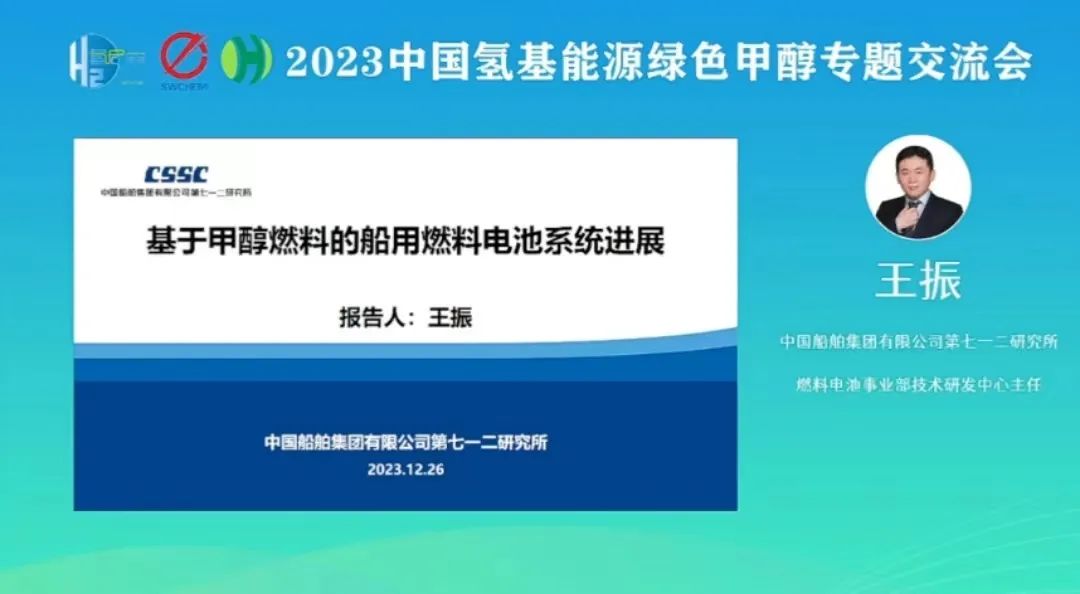 隨后,中國(guó)船舶集團(tuán)有限公司第七一二研究所燃料電池事業(yè)部技術(shù)研發(fā)中心主任王振,在交流會(huì)中進(jìn)行主題《基于甲醇燃料的船用燃料電池系統(tǒng)進(jìn)展》的線上演講。