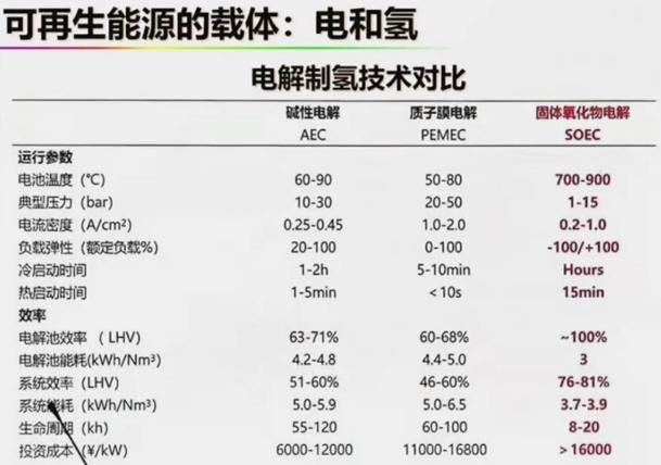 我國有成本優(yōu)勢的是堿性電解,現在商用的是質子膜電解,未來發(fā)展是效率更高的固體氧化電解。