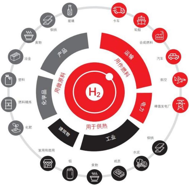 氫能的多功能性及其脫碳潛力可廣泛應用于運輸、建筑和重工業領域。像天然氣一樣,它可以存儲和運輸,并能很容易地轉換成電能、熱量或其他產品。