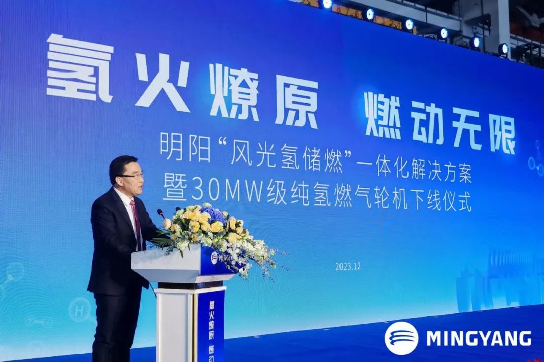 張傳衛在演講中指出,作為中國500強和新能源裝備全球領軍企業,明陽“變不可能為可能”,圍繞顛覆式創新極致化降低成本,助推綠色新質生產力,在全球綠色經濟大賽道中,率先推動新能源實現平價,造福人類社會,服務高質量發展。本次純氫燃氣輪機的下線,是我國大中型燃氣輪機在氫能領域發展的里程碑,是構建新型電力系統的重要成果和國家“卡脖子”技術的重大突破,對實現“碳中和”目標、打造具備國際競爭力的“風光氫儲燃”清潔能源新模式具有重要意義。