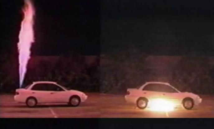 圖2顯示了氫燃料汽車(左)和汽油車(右)的燃料箱,通過破壞性點(diǎn)燃方式所獲得的經(jīng)驗(yàn)。