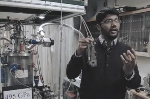 博士后研究員蘭加·迪亞斯(Ranga Dias)介紹了這一發(fā)現(xiàn)所使用的實驗設備