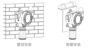 氣體報警器通常采用壁掛安裝或抱管安裝方式。若安裝在墻面上,可以用膨脹螺栓對照探測器的安裝孔位固定牢固。抱管安裝時通過專用抱管安裝配件(固定板、騎馬式管卡)進行固定安裝。