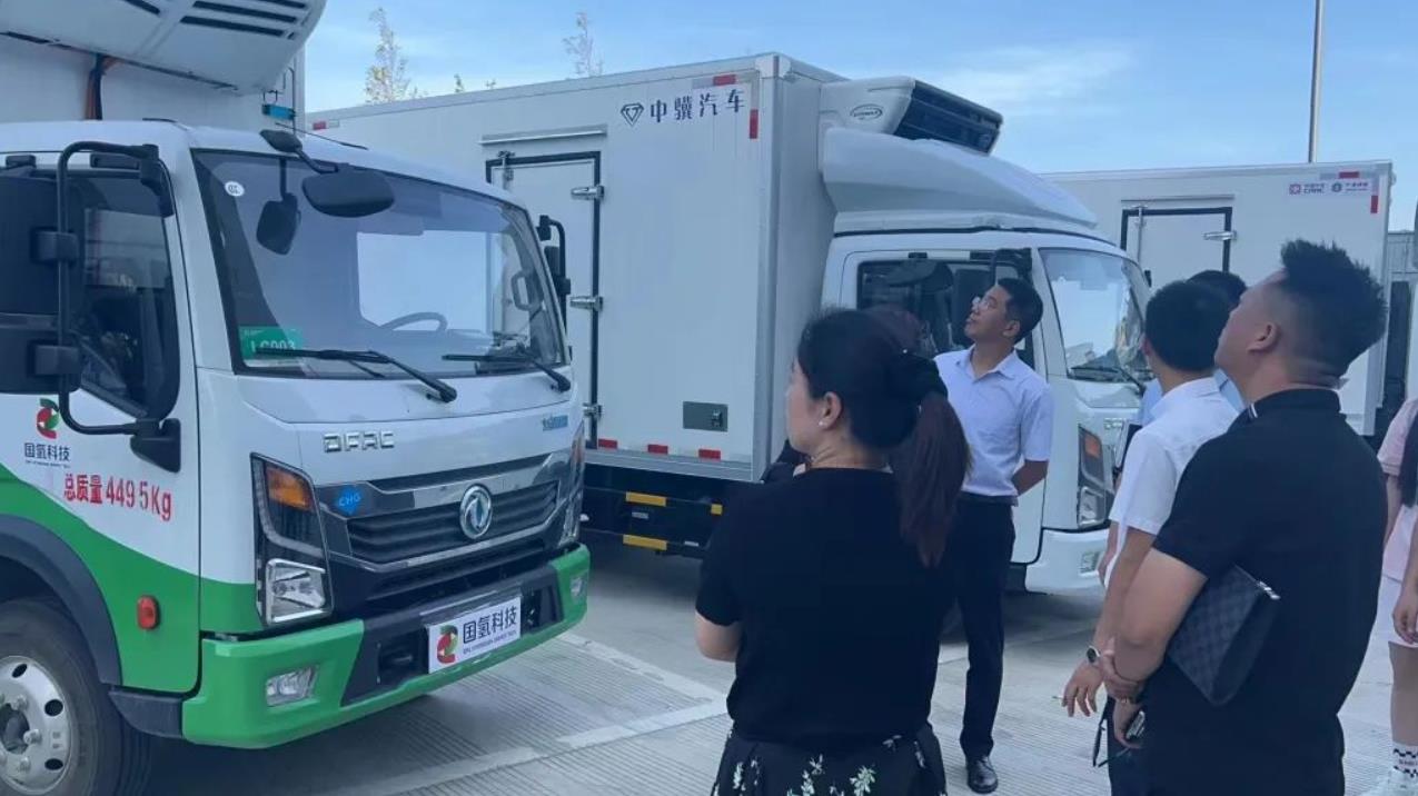 這次市集活動(dòng)上,寧波菜籃子行業(yè)協(xié)會(huì)組織的相關(guān)各方展示了即將在寧波市場(chǎng)投放的氫能城配物流車輛。該批車輛主要包括4.5噸常溫廂式貨車和4.5噸冷藏廂式貨車,均搭載了國(guó)家電投自主研發(fā)的“氫騰”品牌燃料電池。車輛通過化學(xué)反應(yīng)產(chǎn)生電能來驅(qū)動(dòng)車輛,而反應(yīng)的產(chǎn)物是水,使得整個(gè)行駛過程零排放、零污染。