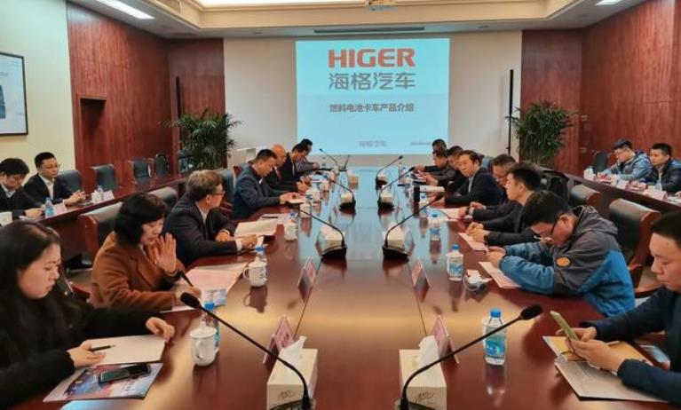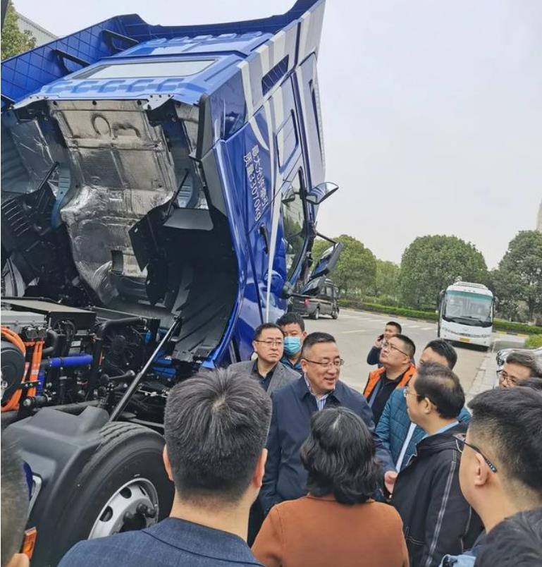 在金龍聯合汽車工業(蘇州)有限公司,考察組一行聽取了蘇州金龍氫燃料電池卡車產品介紹,與公司董事長陳篤廉、總經理黃書平座談。據介紹,蘇州金龍海格氫燃料電池半掛牽引車以大功率氫燃料電池發動機的商業應用為目標,基于貨車運輸重載牽引需求,研究應用了氫燃料電池系統與整車集成方案;完成加氫、運營等氫燃料電池示范應用工程建設,是氫能源在物流運輸領域的重大創新突破,助力行業清潔運輸綠色轉型升級。雙方圍繞氫燃料電池汽車發展歷史、氫燃料重卡技術性能和生產情況、下一步發展趨勢等展開深入交流,探討了大力發展綠色低碳運輸背景下雙方未來合作路徑。