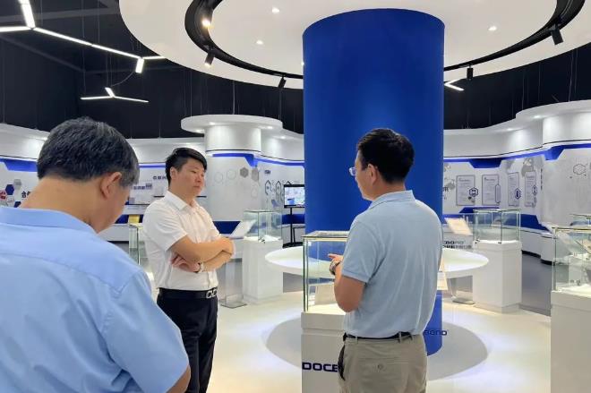7月13日,平度市副市長趙瑞陽一行領導蒞臨青島杜科新材料有限公司進行調研考察工作,孫克征董事長現場等候接待,對市領導的到來表示熱烈歡迎。隨后陪同市領導一行參觀公司產品展廳,詳細介紹了公司發展現狀及模壓雙極板生產情況。
