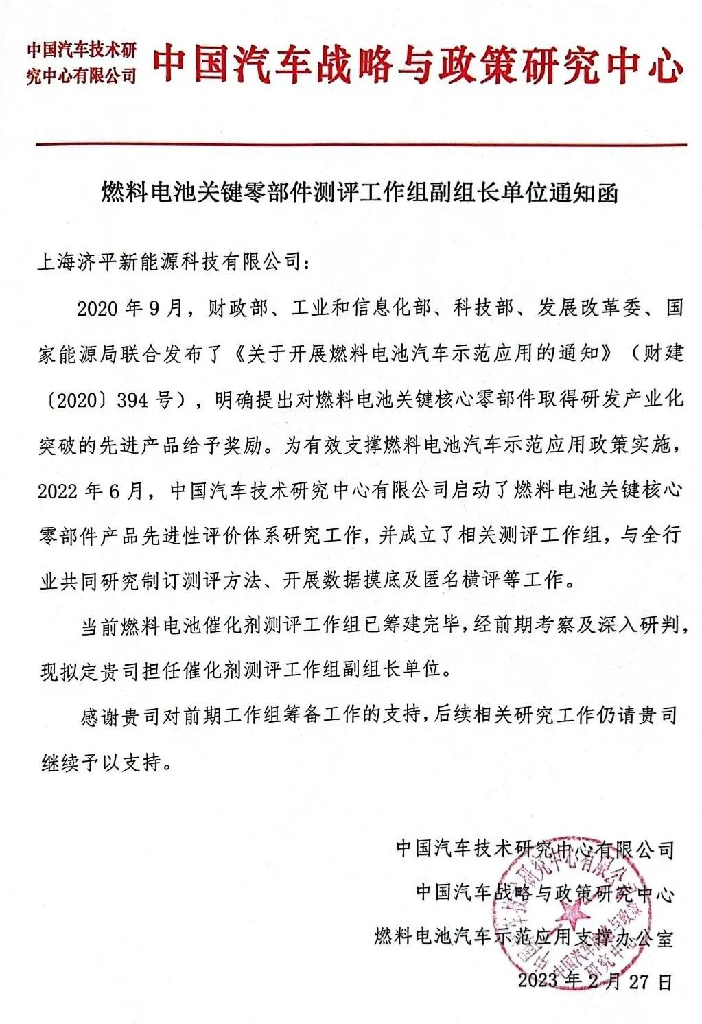 本次當選中國汽車戰略與政策研究中心催化劑測評工作組副組長單位,是肯定,更是擔當與責任,今后,濟平新能源將深度結合自身豐富的催化劑實踐經驗,持續參與燃料電池催化劑標準體系建設,推動催化劑加快發展,助力整個行業邁入新的臺階!