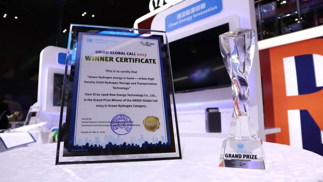 11月6日,“第六屆中國國際進口博覽會第四次工業革命與智慧出行論壇暨聯合國工業發展組織全球方案征集活動頒獎儀式”在上海舉行,聯合國工業發展組織副總干事法圖·海達拉、聯合國駐華協調員常啟德、國際氫能協會副主席毛宗強等嘉賓出席活動。西安一九零八新能源科技有限公司榮獲聯合國工業發展組織2023全球方案征集活動綠色氫能賽道特等獎。