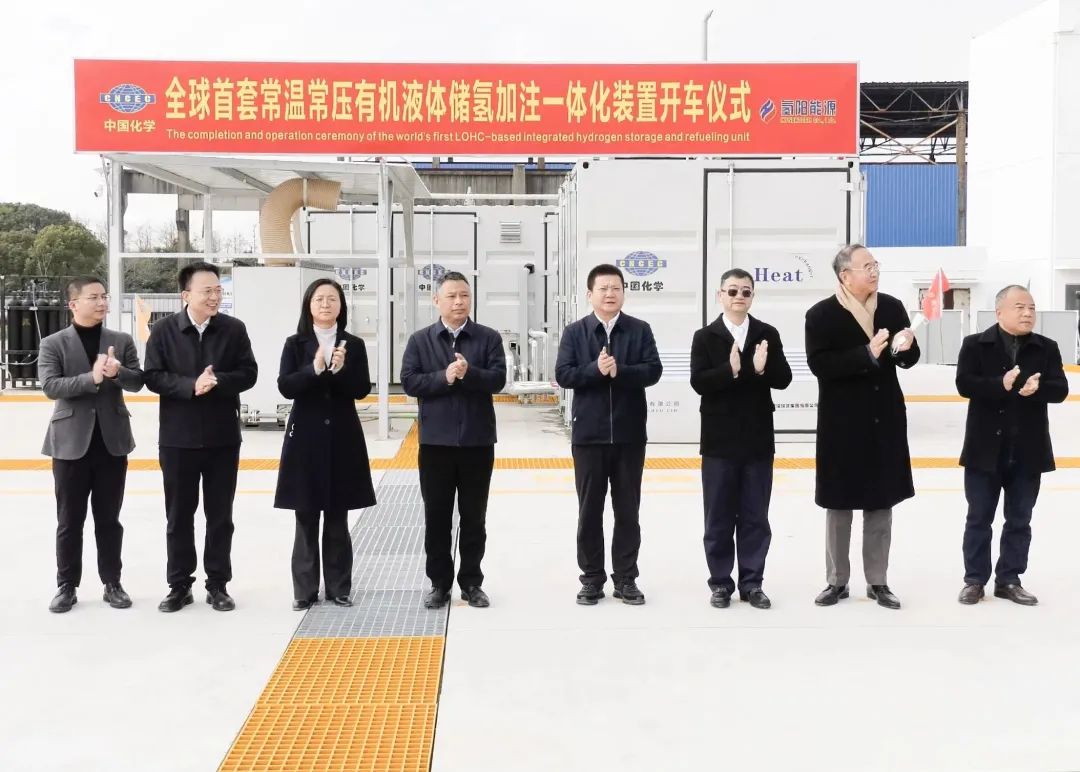 由中化學(xué)建投、氫能效率等企業(yè)合作,聯(lián)合打造的全球首套“常溫常壓有機(jī)液體儲(chǔ)氫加注一體化及氫能綜合利用項(xiàng)目”于2023年1月11日上午在上海市正式開(kāi)車(chē)運(yùn)行。該項(xiàng)目落地上海金山化工二區(qū),聯(lián)合體發(fā)揮各自優(yōu)勢(shì),圍繞“高效、高經(jīng)濟(jì)性跨區(qū)域儲(chǔ)運(yùn)氫+氫能高效熱電聯(lián)產(chǎn)能源應(yīng)用及電氫耦合+氫能加注”打造可復(fù)制、可推廣的氫能源儲(chǔ)運(yùn)及應(yīng)用模式。將氫能在綜合能源領(lǐng)域的應(yīng)用與有機(jī)溶液脫氫、儲(chǔ)氫有機(jī)融合,實(shí)現(xiàn)氫能儲(chǔ)用一體化設(shè)備在常溫常壓下安全高效運(yùn)行,為氫能交通及氫能儲(chǔ)能調(diào)峰、氫能微電網(wǎng)及園區(qū)綜合能源利用提供解決方案。通過(guò)園區(qū)、商業(yè)體等“點(diǎn)”上的應(yīng)用,結(jié)合有機(jī)溶液儲(chǔ)運(yùn)氫氣有效鏈接各能源“點(diǎn)”,以點(diǎn)帶面實(shí)現(xiàn)區(qū)域間的能源供應(yīng)及高效利用。