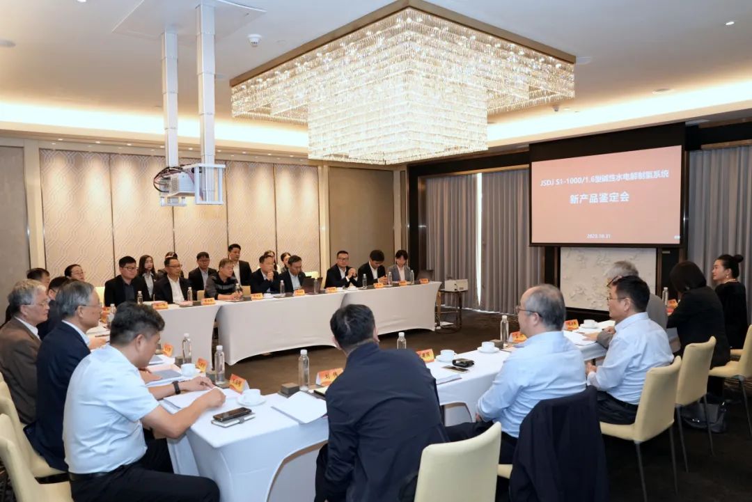 經第三方檢測,JSDJ S1-1000/1.6型堿性水電解制氫系統樣機 的氫氣產量1001.23m3/h(直流能耗4.04 kWh/Nm3@3000A/m2),氣液分離出口氫氣純度99.99%,熱啟動時間10s,最低運行負荷20%。整體技術達到國際先進水平。
