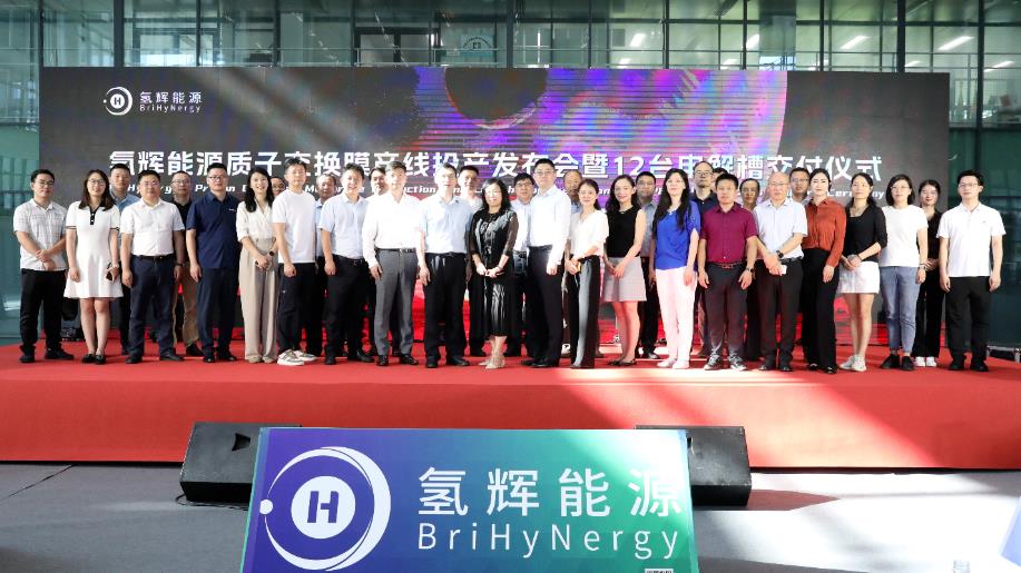 7月12日,氫輝能源(深圳)有限公司(以下簡稱:氫輝能源)在深圳市龍崗區國際低碳城舉行了質子交換膜產線投產發布會,并交付了12臺50標方3MW的PEM電解槽。同時,氫輝能源還與遠景能源、潤世華集團、宏洲新能源、東氫能源簽訂了戰略合作協議。