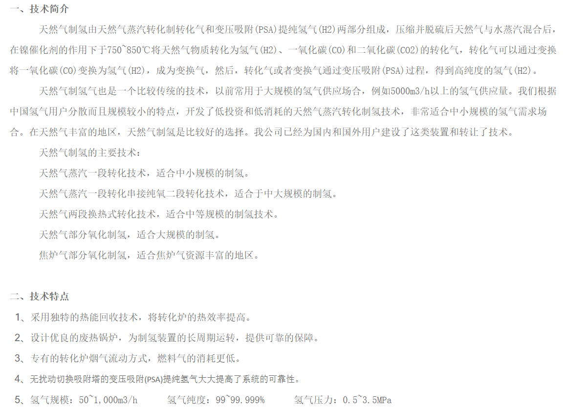 商品名稱:天然氣轉(zhuǎn)化制氫